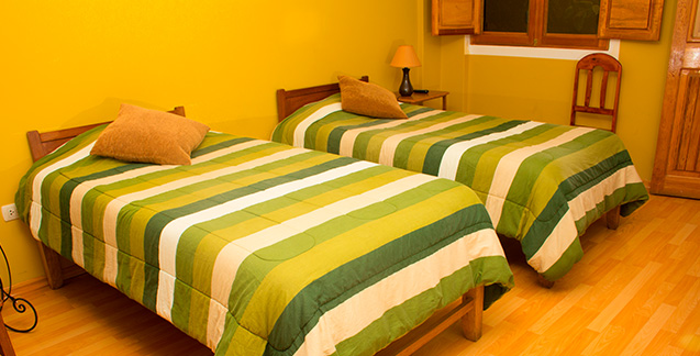 Habitaciones con dos camas, ideales para un descanso placentero para nuestro huésped ya sea por trabajo o por placer. Cuentan con un amplio baño, agua caliente las 24 horas, televisión con cable y conexión a internet inalámbrico. Puede reservar entre nuestras habitaciones coloniales o modernas.
